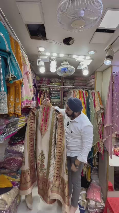 This premium suit is crafted on soft silk all designer jacquard weaving with position printing added only in the weave gaps, giving a clean and rich finish. The originality is clear from the woven backside with its natural silk-zari shine.