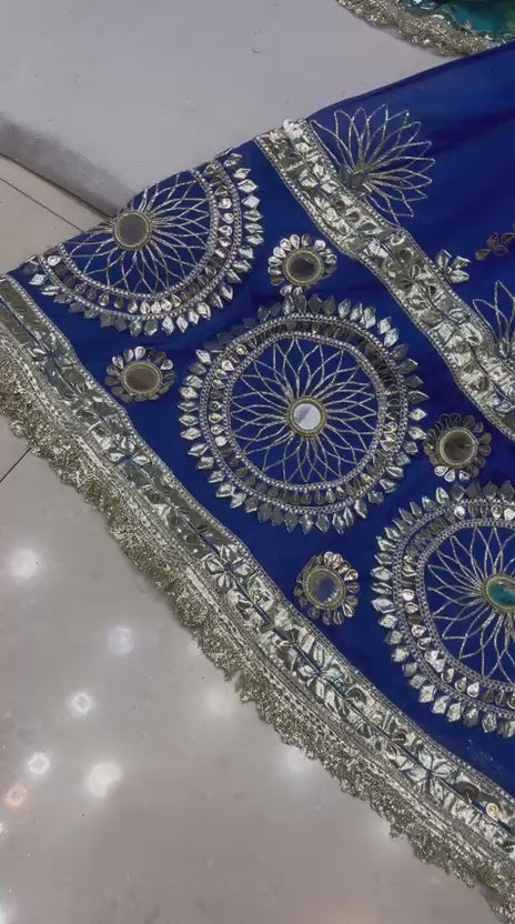 .Georgeous Jacquard silk banarasi chiinon contrast color Dupatta of mirror and leather adding Grace and Beauty..